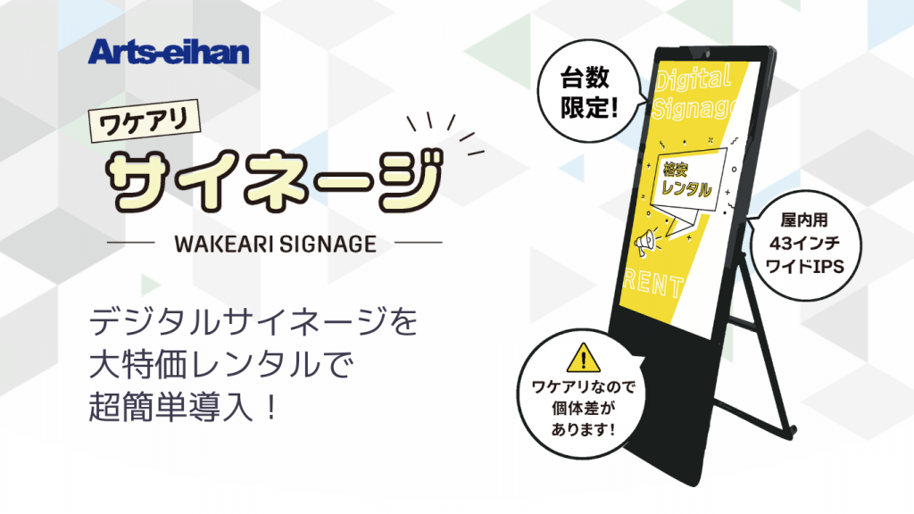 デジタルサイネージを特別価格でレンタルできるサービスを開始しました。